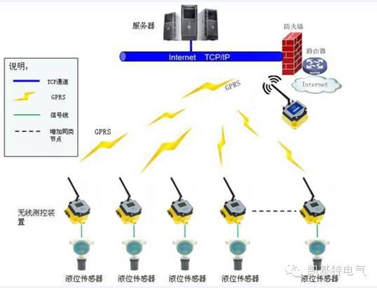 方案設(shè)計(jì): 凱基特電氣的大壩液位無(wú)線監(jiān)測(cè)系統(tǒng),利用無(wú)線傳感網(wǎng)絡(luò)技術(shù)搭建。選用無(wú)線測(cè)控裝置和超聲波液位傳感器,采集大壩內(nèi)液位的高度數(shù)據(jù),通過(guò)GPRS無(wú)線傳輸方式上傳至服務(wù)器,服務(wù)器對(duì)收到的傳感接點(diǎn)傳來(lái)的數(shù)據(jù)進(jìn)行處理,以便對(duì)大壩環(huán)境進(jìn)行監(jiān)控和極限報(bào)警處理。
